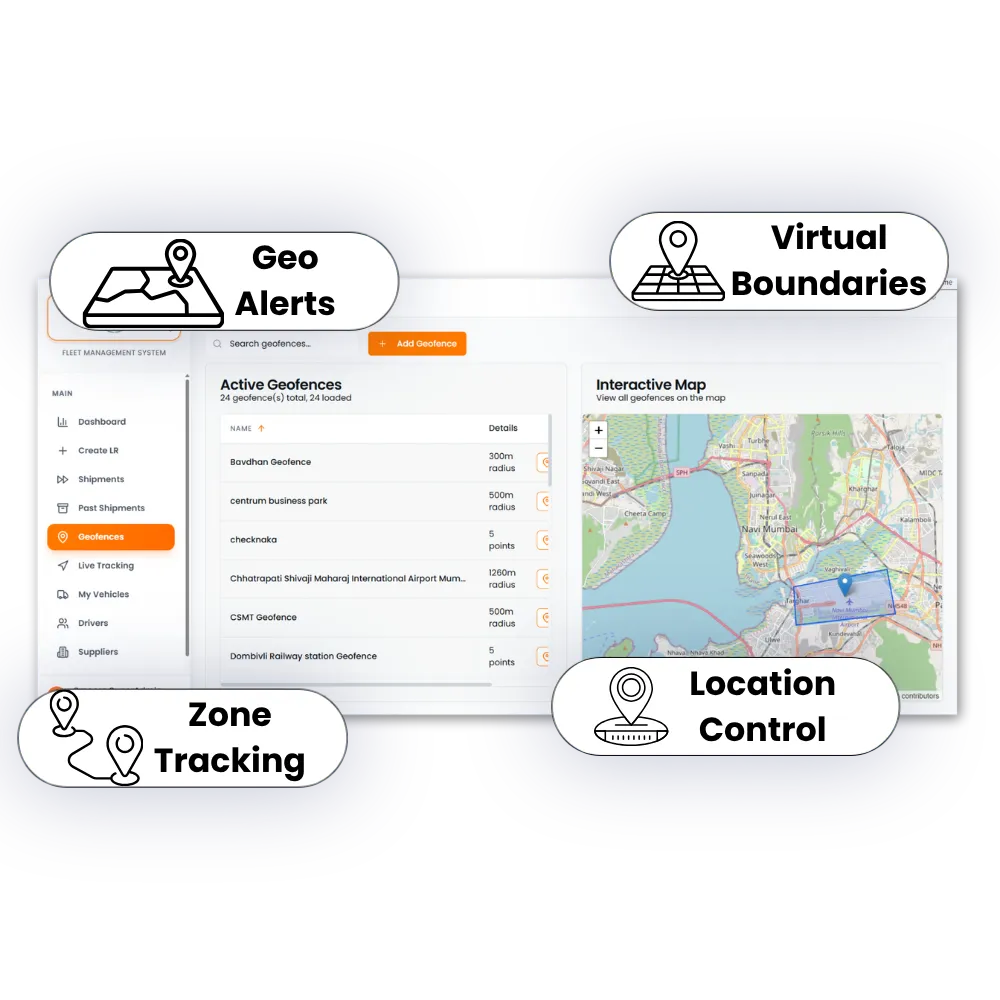 Enhance fleet management with smart geofencing, allowing you to define virtual boundaries for vehicles and shipments. Receive instant alerts whenever a vehicle enters or exits a designated zone, helping prevent unauthorized movement and ensuring route compliance. This feature improves operational efficiency by monitoring fleet activity in real time, optimizing logistics, and reducing risks associated with delays or deviations. With intuitive boundary tracking and easy-to-set geo zones, you can maintain full control over your fleet while improving accountability and overall performance.